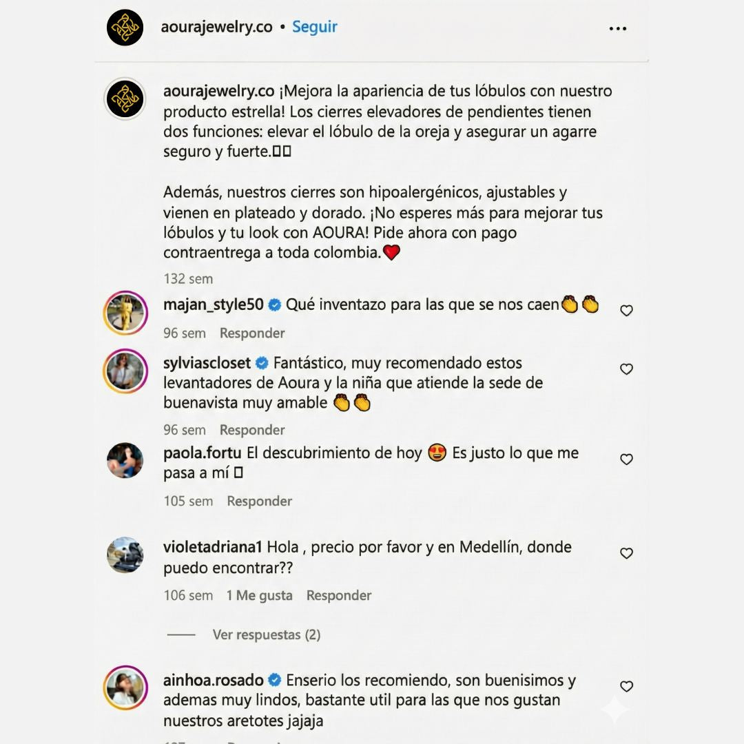 Muy contenta con Auora. Es de esas cosas que uno no sabía que necesitaba. Los aretes se ven más elegantes y ya no me molestan durante el día. Volvería a comprarlos sin pensarlo.